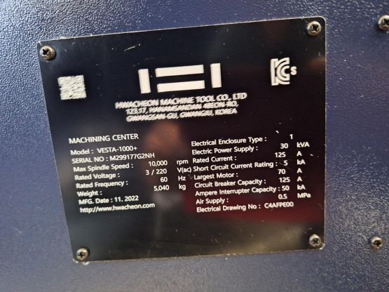 - 규격 FANUC 0i-MF, AICC2, 데이터서버, 에어블로우, 오토파워오프 BT40, 10000RPM, ATC 30EA, 공구길이측정장치(레니쇼우), 주축냉각장치, 칩컨베이어/칩통