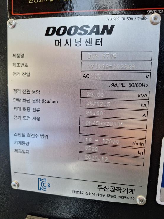 두산 6.7호 머시닝센터 DNM6700 중고머시닝센타
