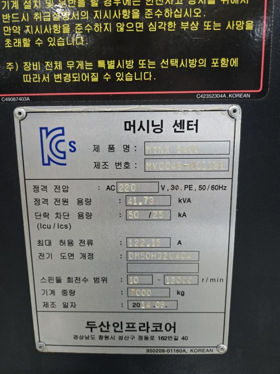 두산 5.4호 머시닝센터 MYNX5400 중고머시닝센타 (2대보유)