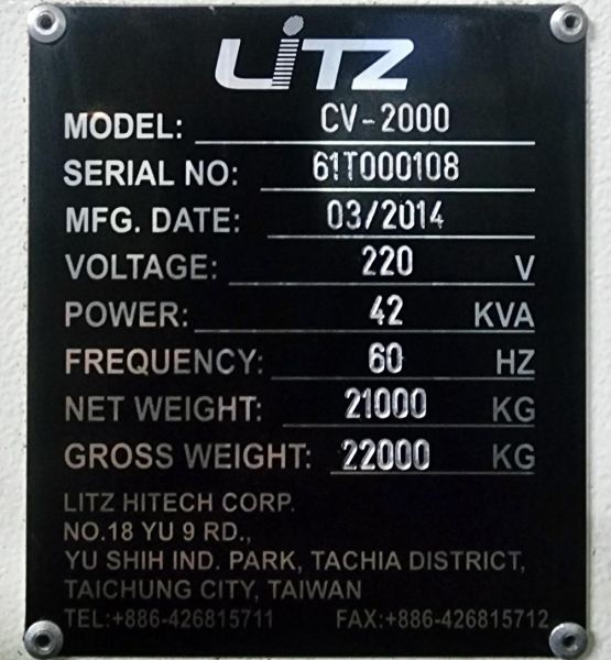 (대만)리츠 9호 머시닝센터/수직머시닝센터 CV-2000 (2014년식)