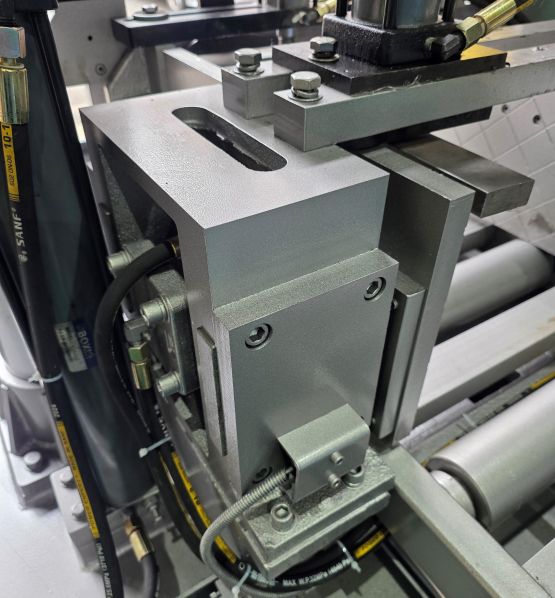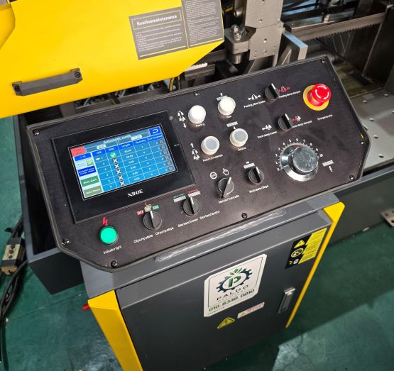 | 제품상세설명 | PDS-430A 톱기계는, 풀 옵션 자동 CNC 톱기계로써 대량 생산 연속 절단에 적합합니다. 힘이 좋고 정밀한 것이 특징입니다. PLC 제어 시스템을 사용하여 여러 세트의 데이터를 연속 절단할 수 있으며, 반복 이송 정확도는 0.2mm입니다. 컬러 터치스크린이 장착되었고, 단일 이송 스트로크는 최대 500mm이고, 500mm 이상의 이송은 여러 번 분할하여 이송할 수 있습니다. 메인바이스는 스플릿 바이스로 설계하여 톱날의 수명이 길고, 소재의 단면도 훌륭합니다. 이송바이스는 양가이드와 양압바이스로 설계하여 내구성이 매우 우수하고 정밀도도 매우 높습니다. 톱날의 속도 변환은 인버터로 편리하게 조절할 수 있습니다. 칩스크류도 기본으로 장착되어 있습니다. 톱날 탠션은 유입식으로 자동으로 장력을 유지합니다. 톱날규격(mm)=41*1.3*5040 메인모터 (kw)=5.5 유압모터(kw)=1.5 절삭유모터(kw)=0.09 기계크기 (L*W*H)mm=2560*2300*1800 순수중량(KG)=2500 |