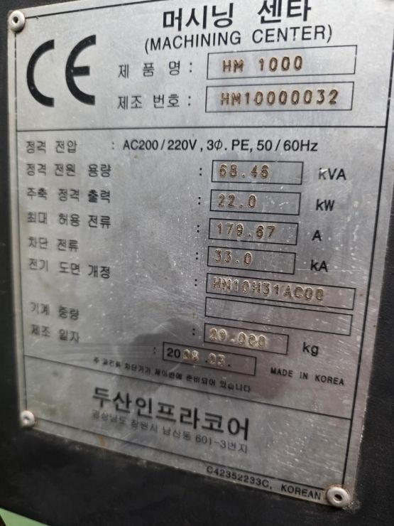 H-MACHINING CENTER(DOOSAN,HM1,000)