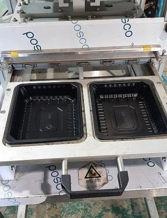 사양: 2구 자동 실링 구조 (이중 트레이 대응) 필름 자동 공급, 컷팅 기능 탑재 온도·시간 정밀 조절 가능 식품, 반찬, 도시락, 육가공, 수산물 포장용 SUS 스테인리스 프레임으로 위생적이며 내구성 우수