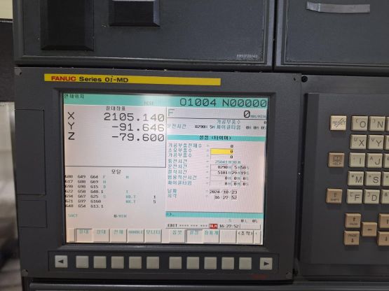 - 규격 FANUC 0i-MD, AICC2, 데이터서버, 에어블로우, 오토파워오프 BT40, 10000RPM(직결식), ATC 24EA, 스핀들오일쿨러, 칩컨베이어/칩통
