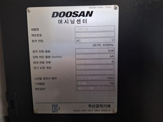 두산 5.6호 머시닝센터 VM56 중고머시닝센타