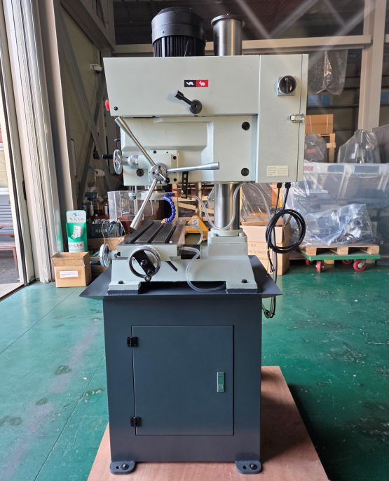| 제품상세설명 | DM-32A 밀링은, KCS인증마크를 획득한 안전하고 정밀한 밀링기입니다. 모터 3마력에 기어박스 타입이라 힘이 좋은 것이 특징입니다. 최대 32파이까지 드릴가공이 가능하고, 탭은 철판일때 M16, 주물일때 M18까지 가능합니다. 페이스 커터는 최대 75파이까지 가공이 가능하고, 수직방향 앤드밀 작업은 25파이까지 가능합니다. 깊이 방향으로 디지털이 장착되어 사용하기 편리합니다. 스핀들 테이퍼는 MT3 이고, 스핀들 스트로크는 150mm입니다. 스핀들 회전속도는 저속기어에서 0~540RPM, 고속기어에서 0~2000RPM입니다. 주축중심에서 기둥까지의 거리는 265mm이고, 기둥의 직경은 115파이입니다. 테이블 규격은, 730*210mm이고, X축 이동거리 370mm, Y축은 170mm입니다. 헤드의 상, 하 이동거리는 450mm입니다. T홈의 폭은 16mm입니다. 절삭유는 자동 공급됩니다. 기계 규격은 약 1000*1000*2000mm입니다. 기계 순수 중량은 366kg입니다. |