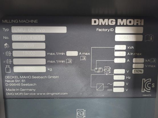 DMG MORI ※주축관통※5축가공기 DMU60eVo 중고5축가공기, 5축머시닝센터