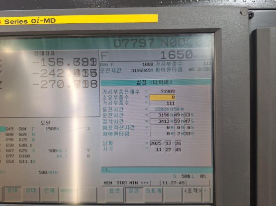 - 규격 FANUC 0i-MD, AICC1, 에어블로우, 오토파워오프 BT40, 10000RPM, ATC 30EA, 주축냉각장치