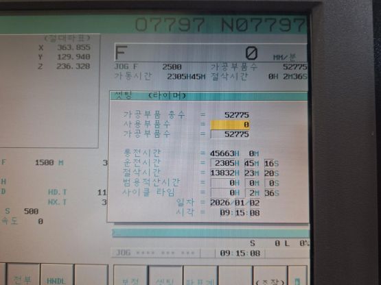 - 규격 FANUC 0i-MC, AICC, 데이터서버, 에어블로우, 오토파워오프 BT40, 10000RPM, ATC 30EA, 스핀들오일쿨러