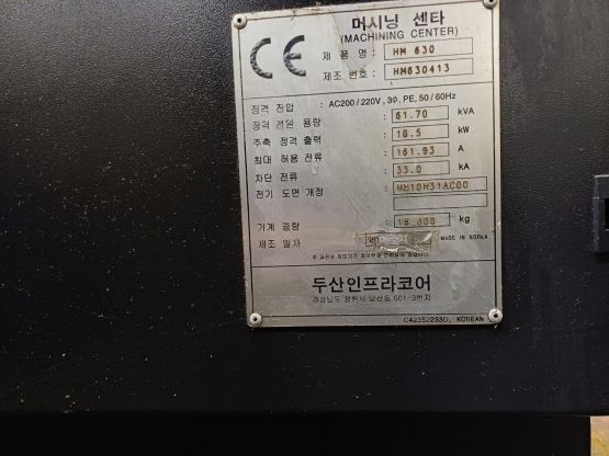 1. 장비명 : 두산 호리존탈 머신닝센터