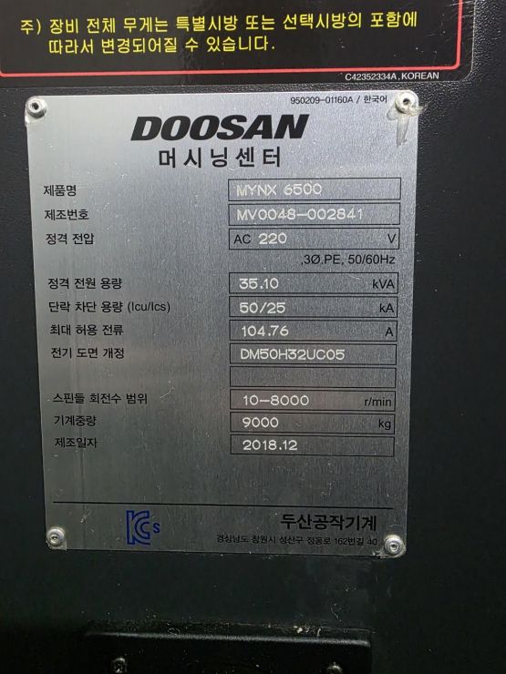 두산 6.5호 머시닝센터 MYNX6500 중고머시닝센타