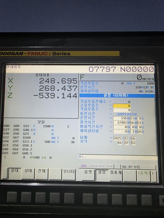 - 규격 FANUC 0i-MF, BT40, 8000RPM, ATC 30EA, 스핀들오일쿨러, 칩컨베이어/칩통
