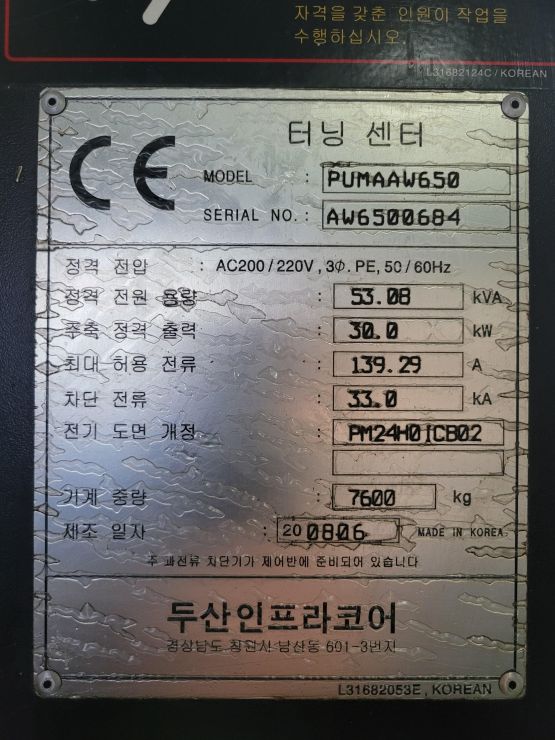 15인치 터렛 CNC선반, 두산인프라코어, 2008년 6월식, FANUC i SERIES