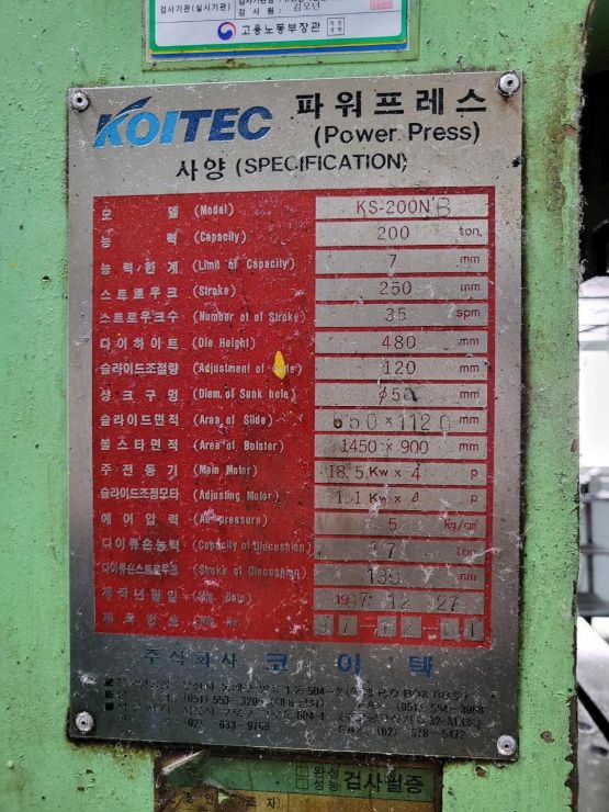 능 력 : 200TON