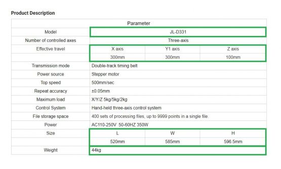 - 규격 x300 y300 z100