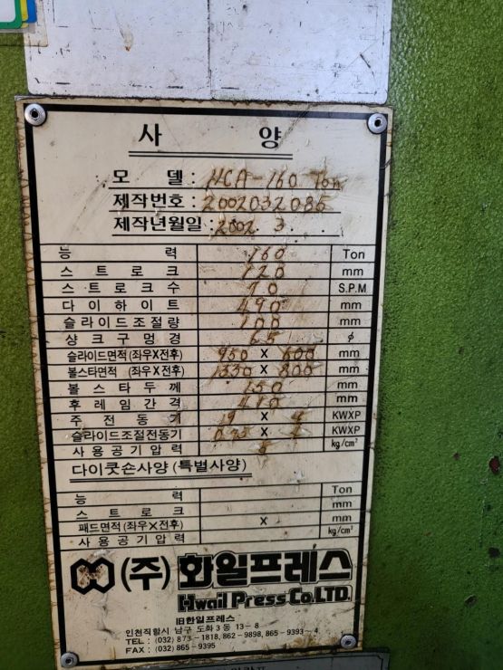 "(주) 세광기계" HCA-160 T 화일 프레스 판매 합니다.