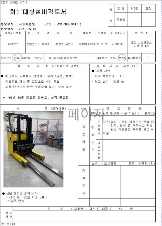 2. 해당장비는 현대자동차 그룹 VAATZ 유휴자산 관리 경매공고를 통해 응찰할 수 있음