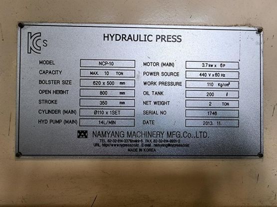 남양 10톤 자동 유압프레스
