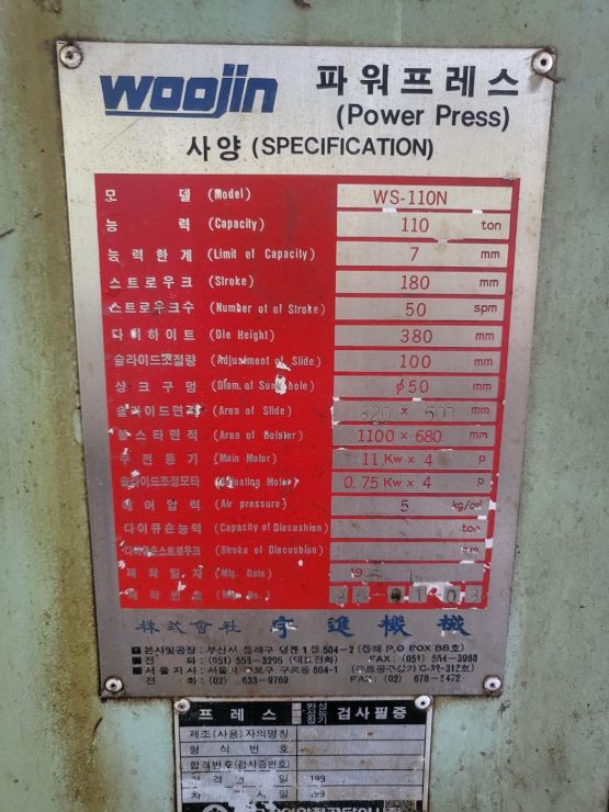 '(주) 세광기계' WS-110톤 우진 프레스