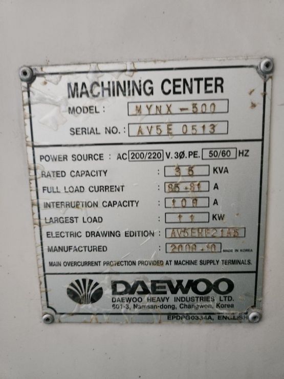 대우 머시닝센터 MYNX-500 (2000년 10월)