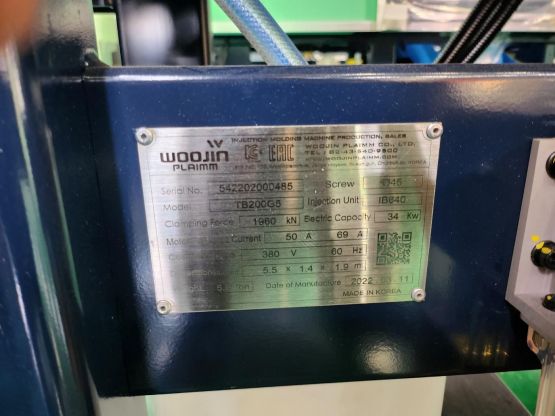 우진사출기 TB-200G5 200톤 하이브리드타입 (2022년 3월)-동일사양 3식-매장입고