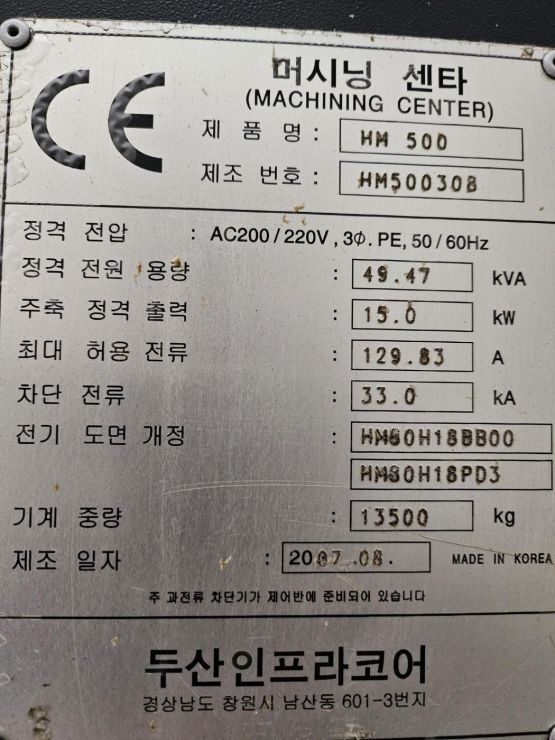 HM500 ,6파렛트 , 60툴 ,주축관통, 칩콘베어