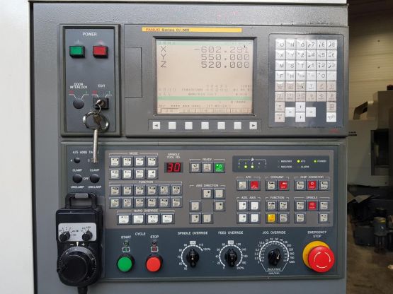 - 규격 FANUC 0i-MD, AICC2, 데이터서버, 에어블로우, 오토파워오프 BT40, 12000RPM(직결식), ATC30EA, 공구길이측정장치(Z마스터), 스핀들오일쿨러, 칩컨베이