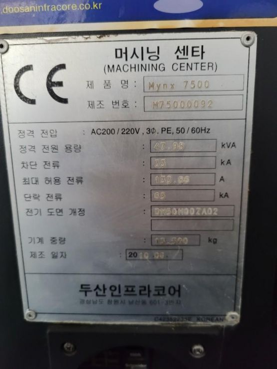 두산 7호 머시닝센터 MYNX7500 중고머시닝센타
