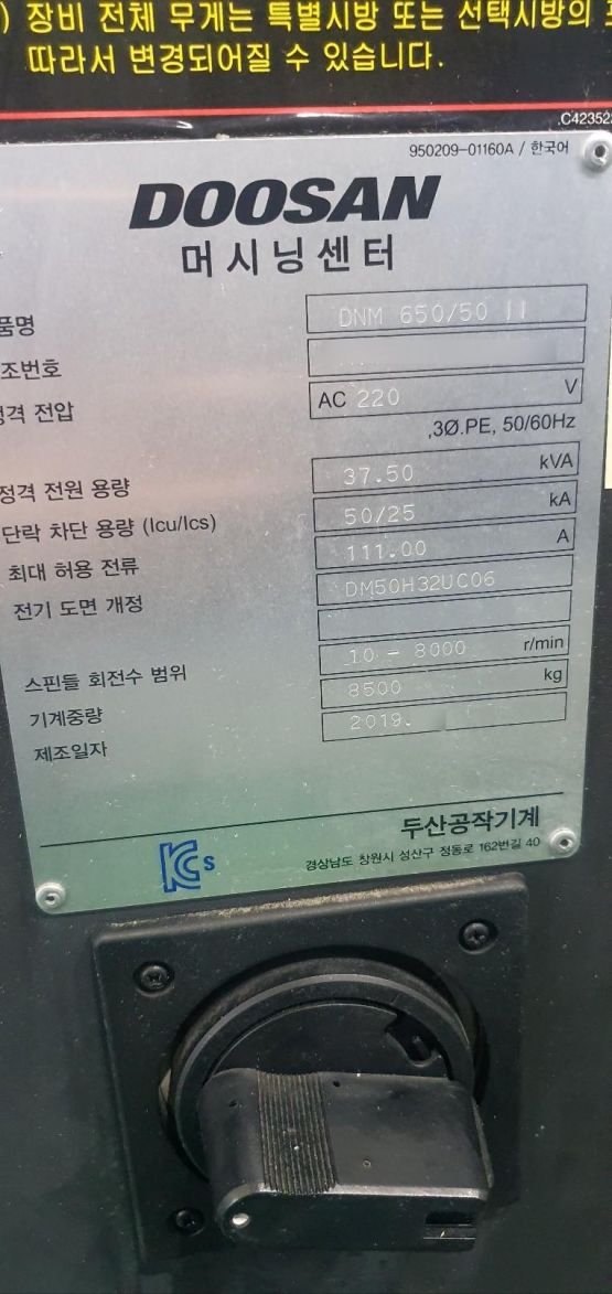 V-MACHINING CENTER(DOOSAN,DNM650/50Ⅱ)
