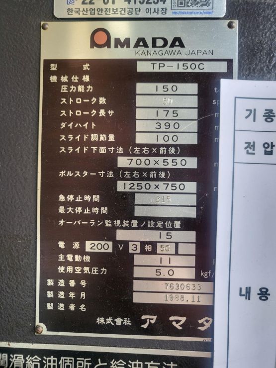 "(주) 세광기계 " 아마다 TP-150C 프레스 판매 합니다.