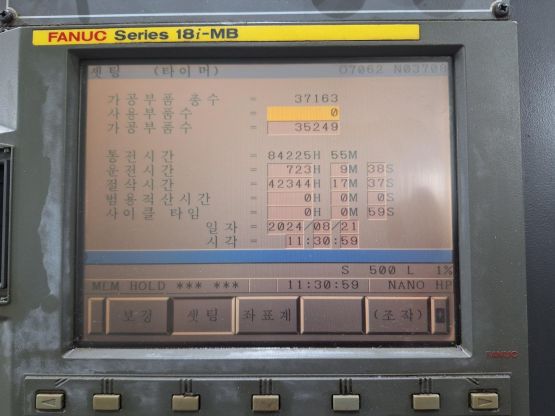 - 규격 FANUC 18i-MB, NANOHP(리스크보드 600블럭), 데이터서버, 에어블로우, 오토파워오프, BT50, 12000RPM, ATC 8EA, 공구길이측정장치(블룸), 스핀들오