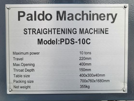 파워는 10톤이고, 오픈하이트400mm, 스트로크220mm, 테이블크기는400*300mm입니다. 로드중심에서 기둥까지 거리 150mm이고, 기계 무게355kg입니다.