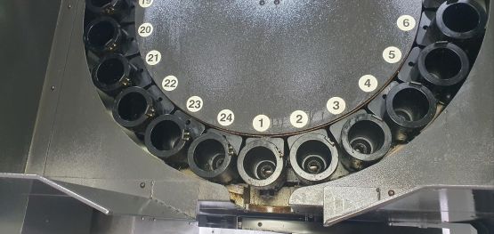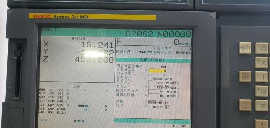 - 규격 FANUC 0i-MD, AICC2, 데이터서버, 에어블로우, 오토파워오프 BT50, 6000RPM(기어타입), ATC 24EA, 스핀들오일쿨러, 칩컨베이어/칩통