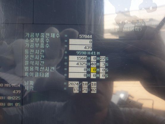 - 규격 FANUC 0i-MF, AICC2, 에어블로우, BT50, 6000RPM, ATC 24EA, 공구길이측정장치(Z마스타), 칩컨베이어/칩통