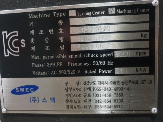 스맥 5호 ※주축관통※머시닝센터 LCV500 중고머시닝센타