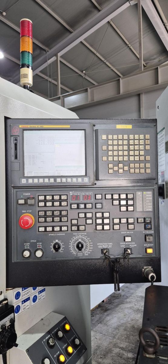 - 규격 FANUC 0i-MD, AICC2, 데이터서버, 에어블로우, 오토파워오프 BT40, 8000RPM, ATC 30EA, 주축관통절삭유, 유압유니트, 칩컨베이어/칩통