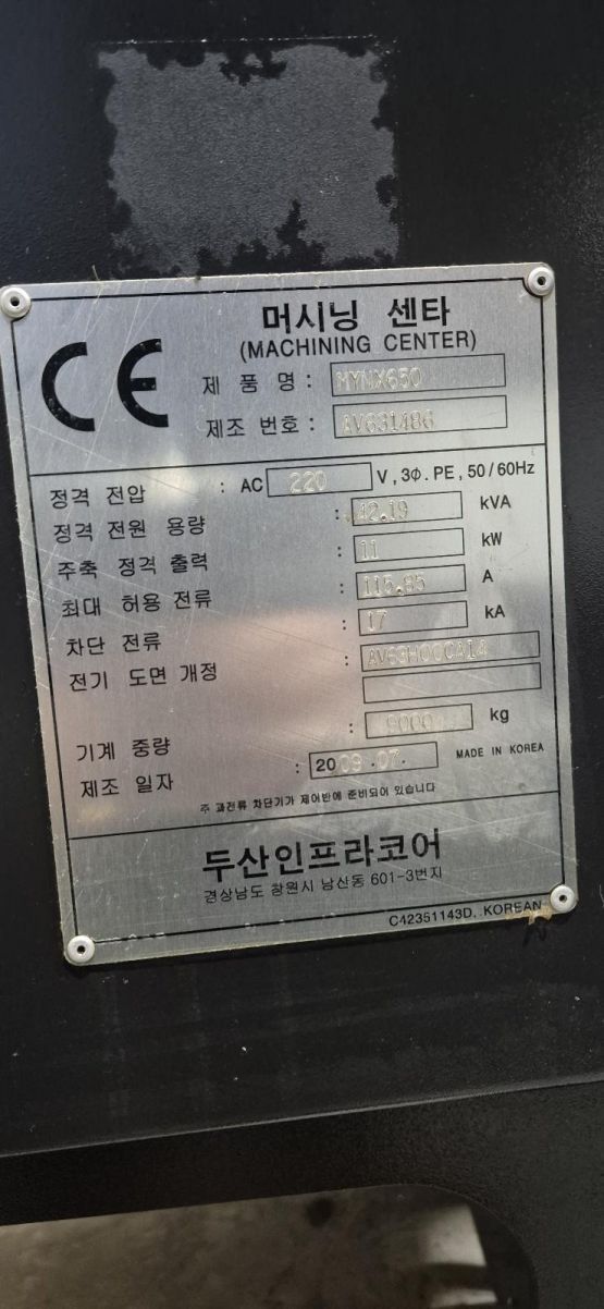 두산 6.5호 머시닝센터 MYNX650 중고머시닝센타