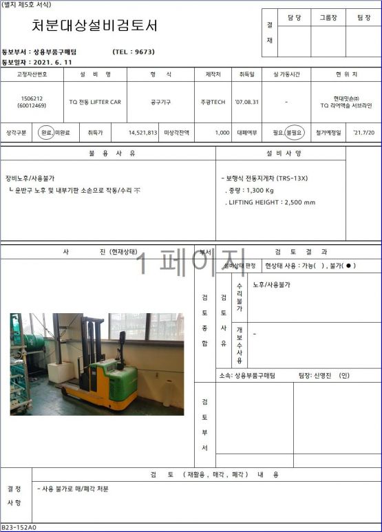 14,521,813원1. 제품명 : TQ 전동 LIFTER CAR