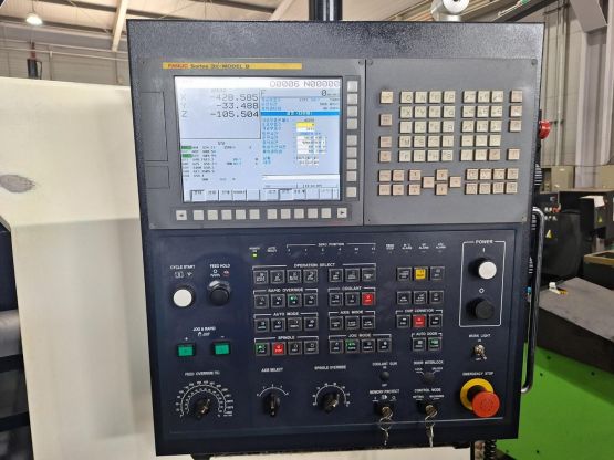 - 규격 FANUC 31i-MB, AICC2, 데이터서버, 에어블로우, 오토파워오프 BT50, 8000RPM(기어타입), ATC 24EA, 스핀들오일쿨러, 칩컨베이어/칩통