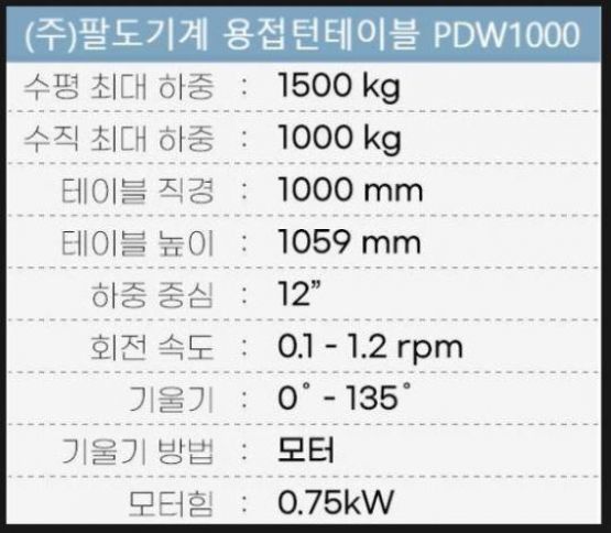 | 제 품 명 | (주)팔도기계 용접 턴테이블 PDW1000 용접포지셔너 |