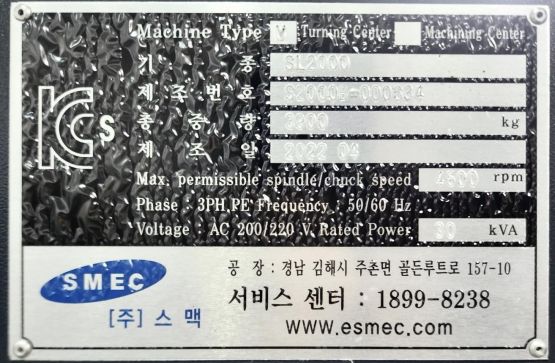 스맥 8인치 CNC선반 SL2000 (2022년식)