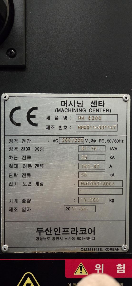 두산 6호기 수평머시닝센터 HM6300