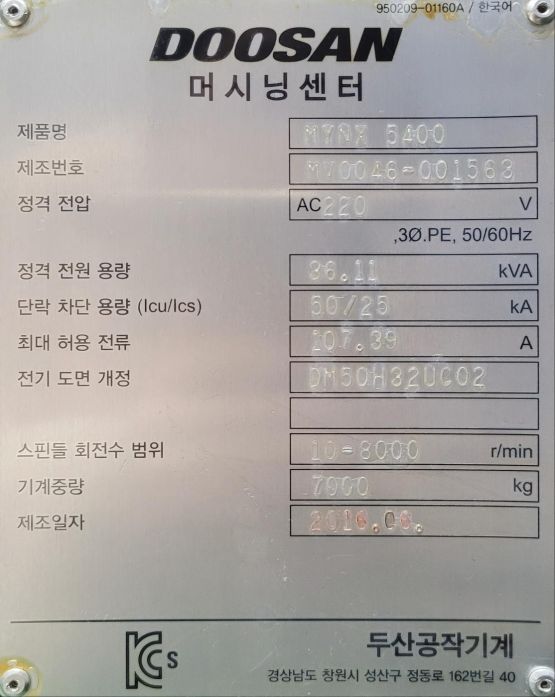 두산 5.4호 머시닝센터 MYNX5400 중고머시닝센타