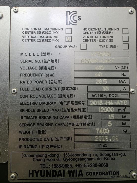 현대위아 5.6호 ※주축관통※머시닝센터 KF5600 중고머시닝센타