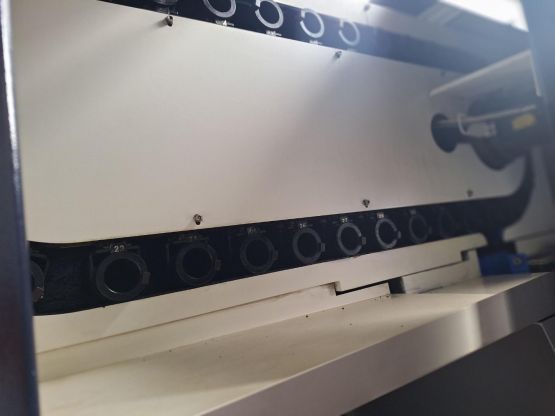 - 규격 FANUC 31i-MB, HAI600, 데이터서버, 에어블로우, 오토파워오프, BT40, 20000RPM, ATC 30EA, 공구길이측정장치(레니쇼우), 스핀들오일쿨러, 칩컨베이어