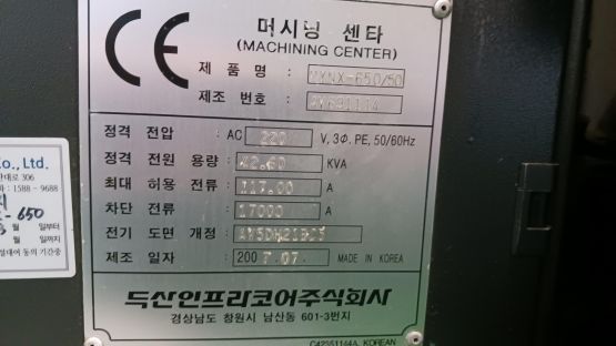수직머시닝센타6호 두산 머시닝센터 MYNX-650/50