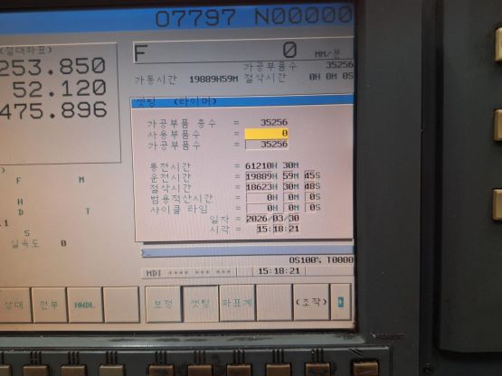 - 규격 FANUC 18i-MB, AINANO, 데이터서버, 오토파워오프 BT50, 6000RPM(기어타입), ATC 40EA, 리니어스케일(Z축), 스핀들오일쿨러, 칩컨베이어/칩통