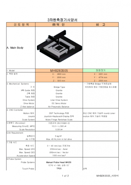 ㅡ.측정범위(mm) : 2,800×3.500×500mm