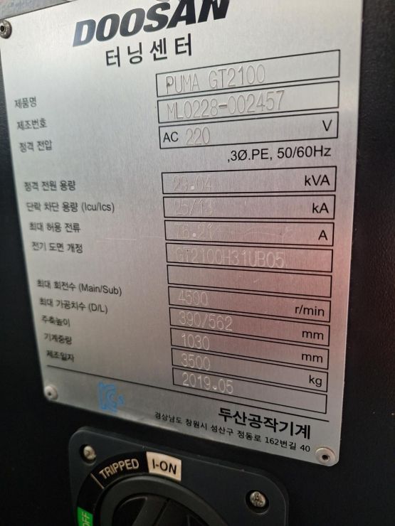 두산 8인치 CNC선반 PUMA GT2100 중고CNC선반