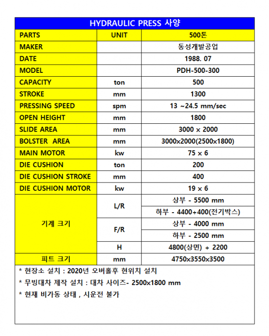 • 규격 500톤, 2500*1800